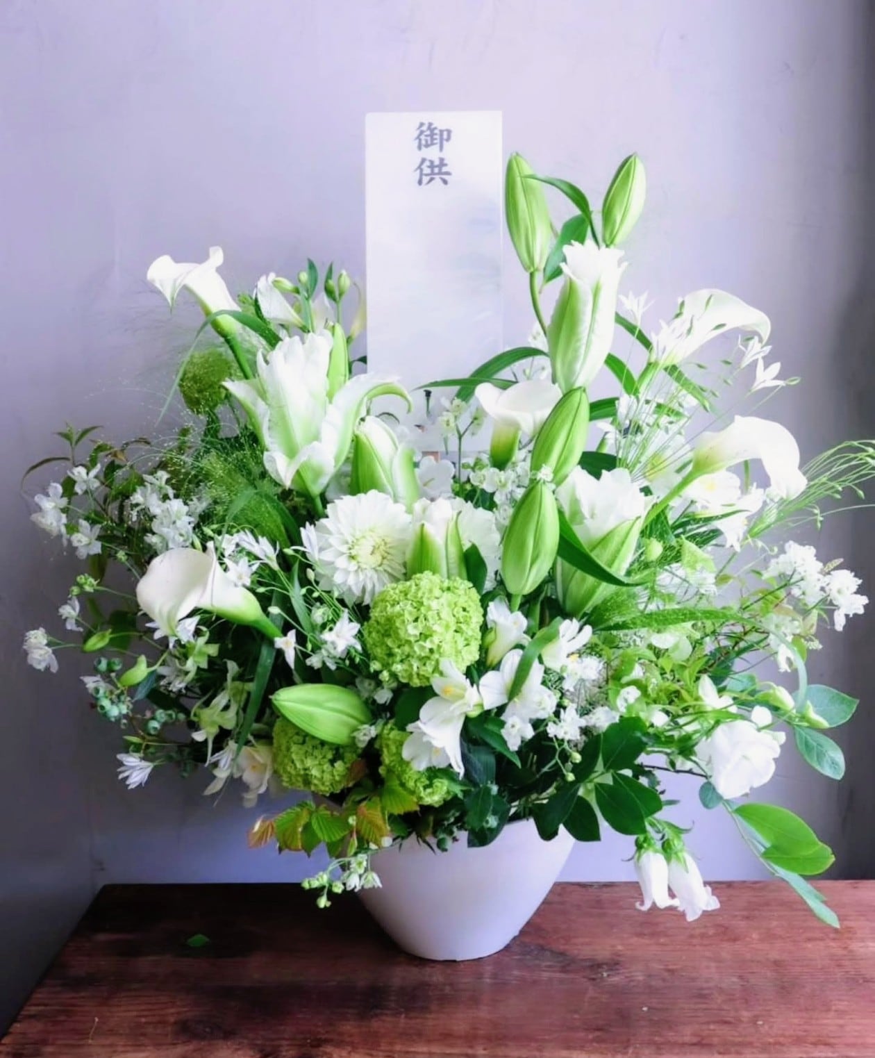 お洒落な胡蝶蘭を取り入れた落ち着いた雰囲気のお供えアレンジメントまで、
